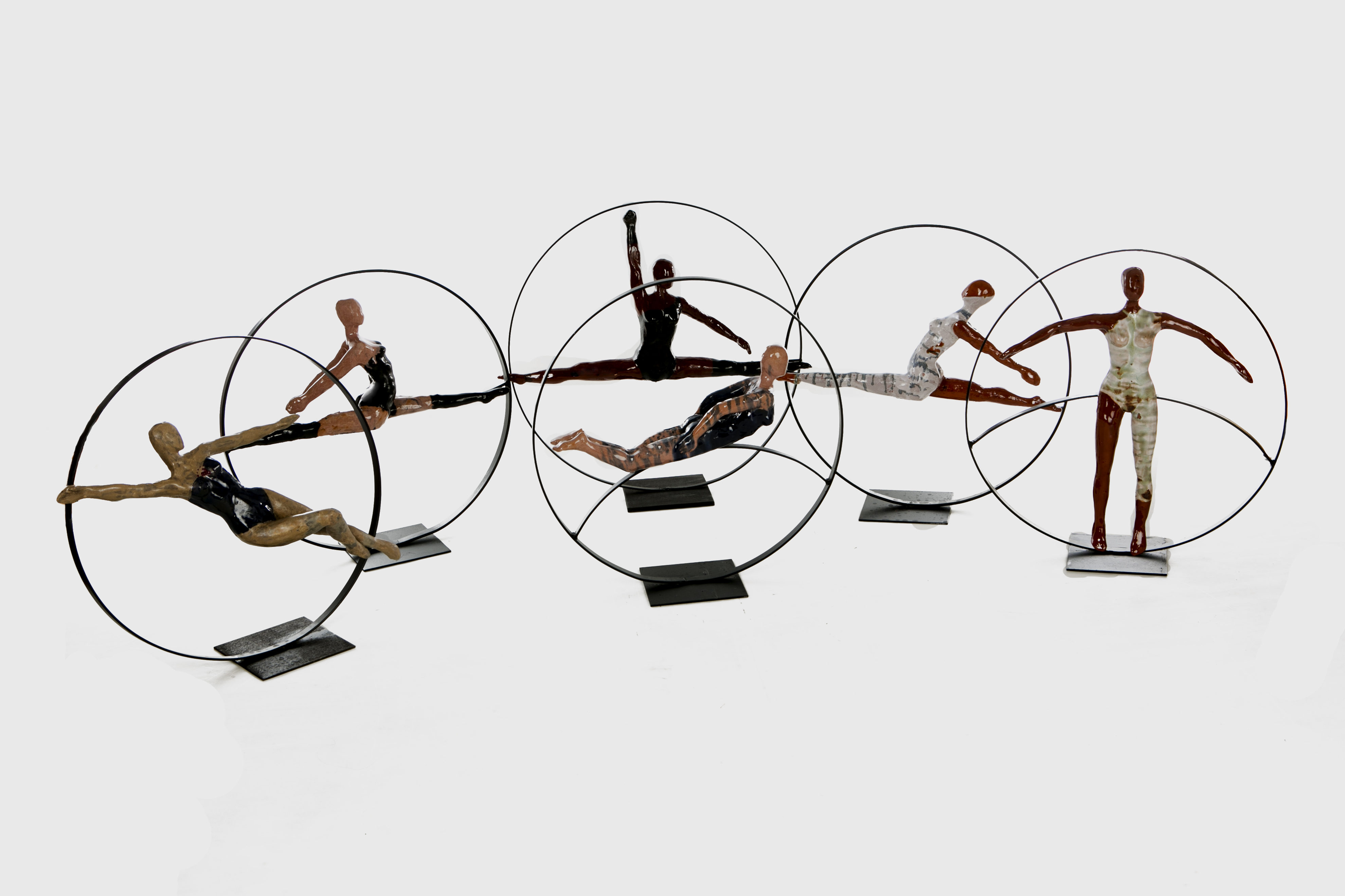 Figura femenina en cerámica esmaltada dentro de un aro de…